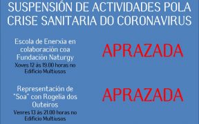 O Concello de Moraña suspende a Escola de Enerxía, a representación de “Soa” e as Escolas Deportivas Municipais A charla enerxética programada para esta tarde e o espectáculo “Soa” fixado para mañá aprázanse e fixarase ...